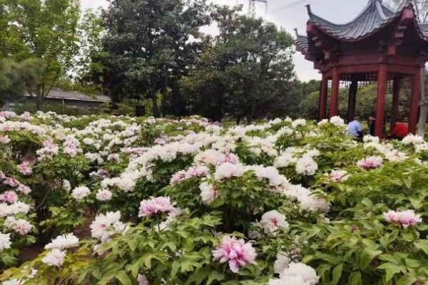 中国国花园:全园牡丹开放品种约120个,主要分布在五月坊、国花台周边、东门内广场等。其中,盛开的牡丹品种有海黄、皇冠、宁静红、丝路花语等。第一个牡丹品种有雪桃花、洛阳红、香玉、春柳(五月坊内)等。公园里的黄刺玫瑰和牡丹正在盛开。