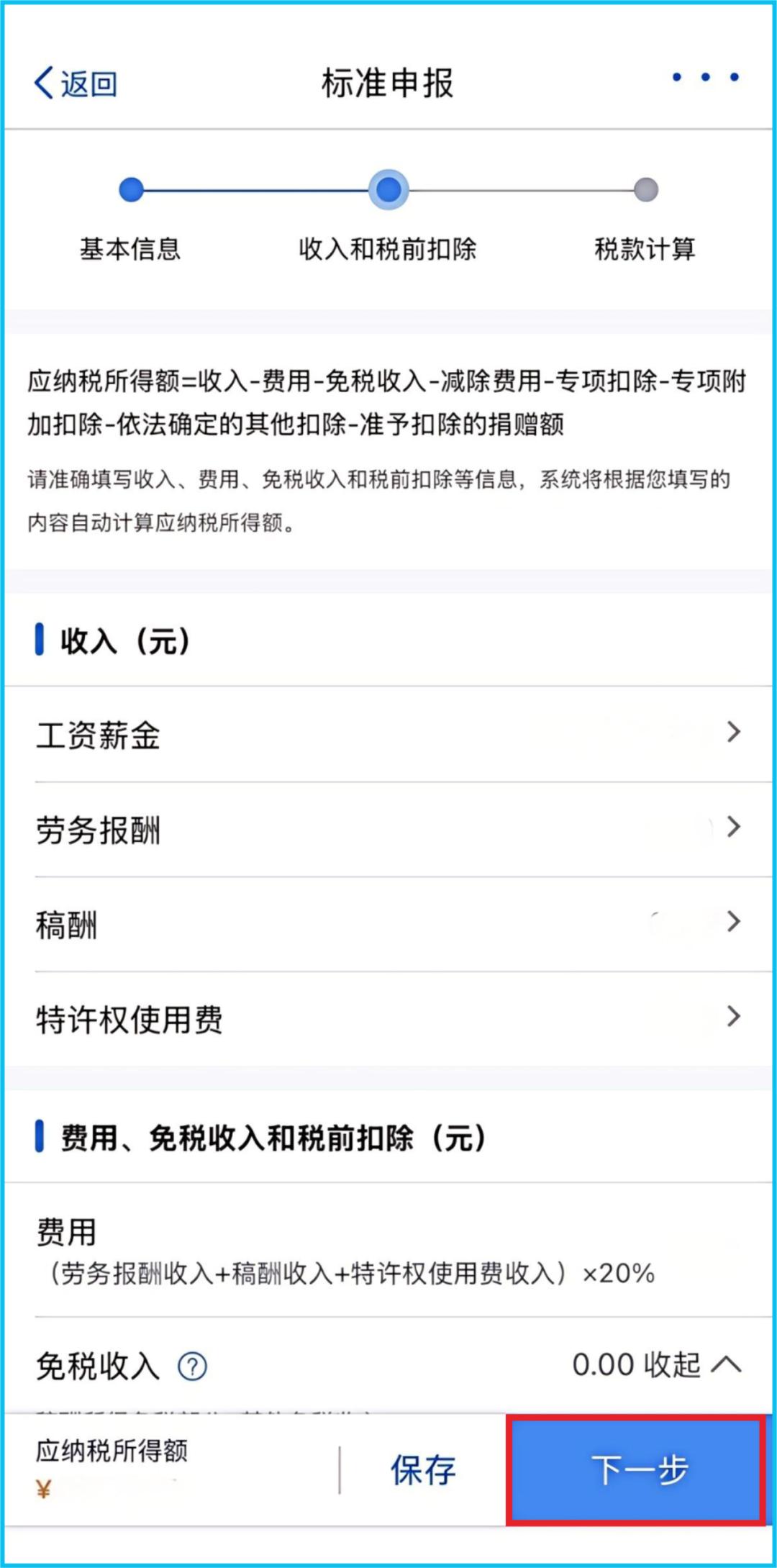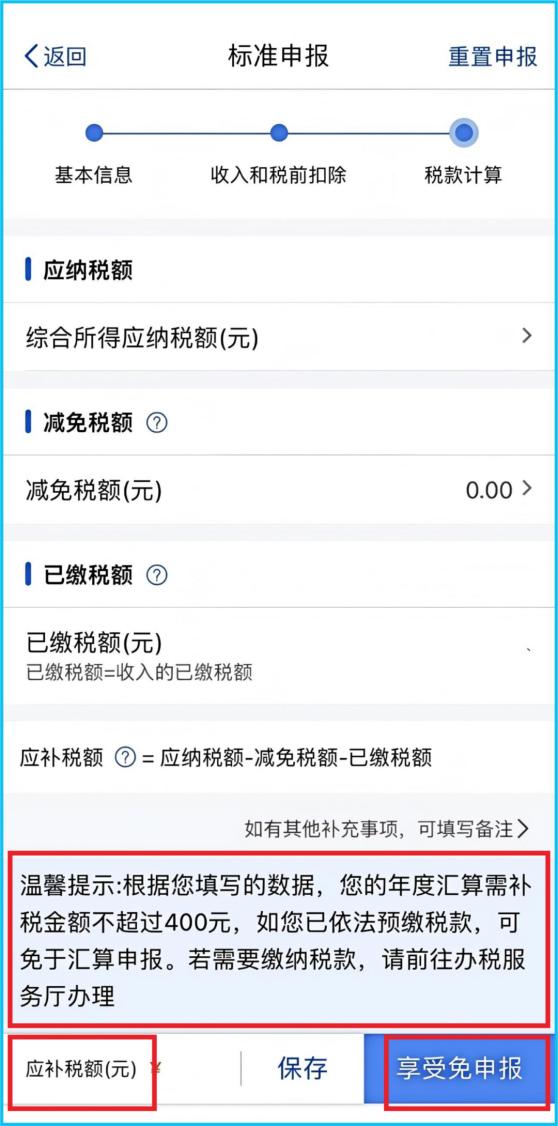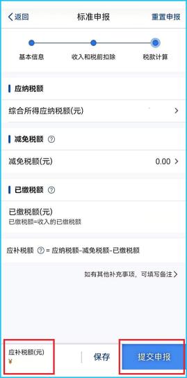 系统会根据你填写的信息,自动计算出你的“需要缴纳税款”或“应退税款”。