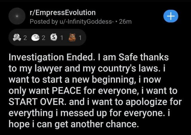 而且这个帖子很不正常。为什么她会知道警察要上门的消息,为什么她的设备还能继续使用?这是个谜。毫无疑问,双方从此彻底分手了。