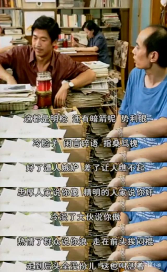 这里是编辑部的老大哥,戴着很厚的眼镜,胆怯迂腐,但心地善良,是剧中很传统的知识分子。