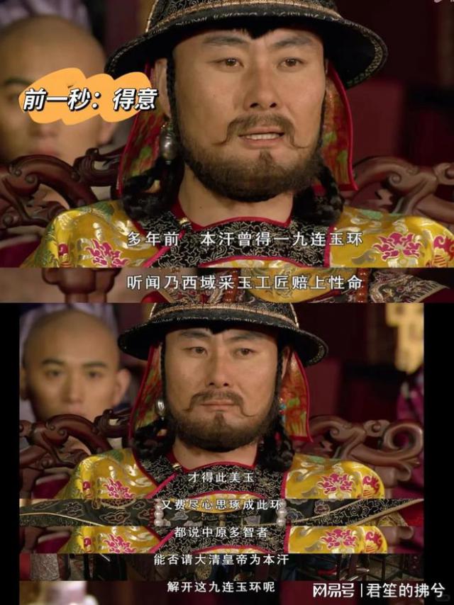 甄嬛把酒倒在地上,用敬死人的方式侮辱摩格,让摩格“不必过则则”。他讽刺自己知识少。摩格拿出国宝九连环,想给皇帝和大臣一个难题,拿回一局。然而,他没想到会被简单粗暴的月亮直接扔掉,他也没有忘记阴阳的波浪。摩格现在完全受不了了。这种委屈的小表情几乎要哭了。不管花了多长时间,每次看这一段,都觉得摩格太惨了,被一大一小情商最高的人打了。