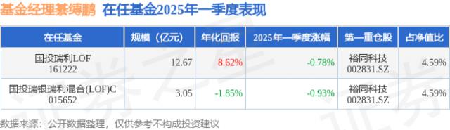 证券之星消息,截至 2025 2008年第一季度末,基金管理部下共同管理。 2 只有基金,本季度表现最好的是国投瑞利。 LOF季度净值下跌(161222) 0.78%。