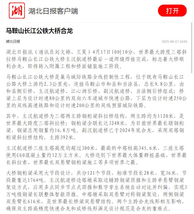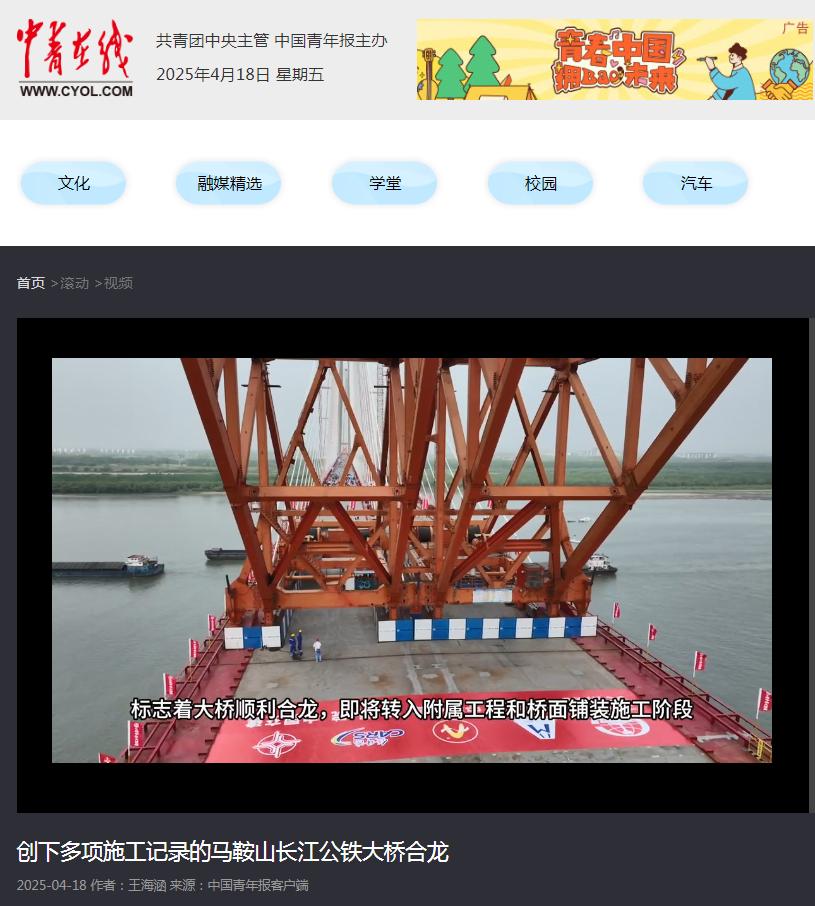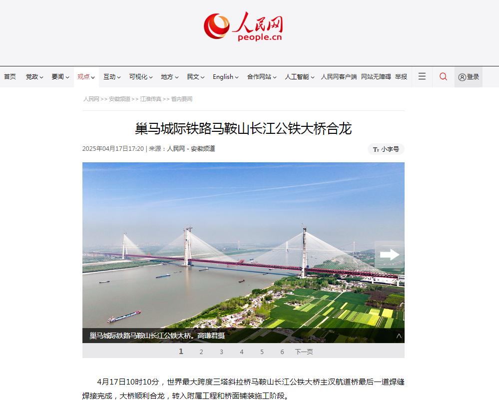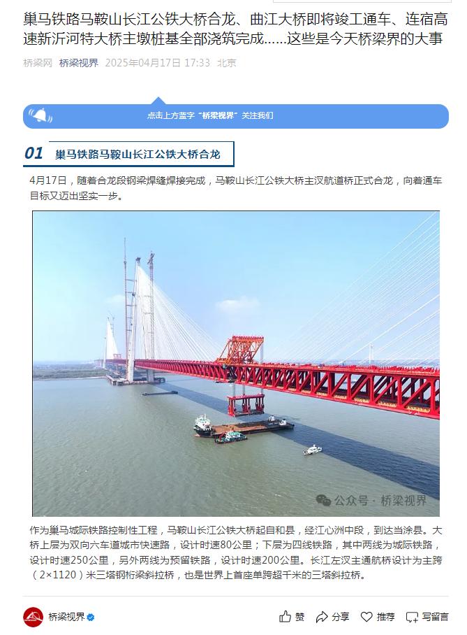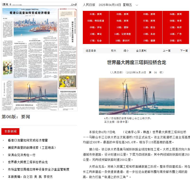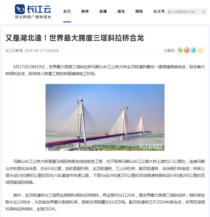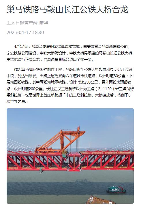 霸屏!看看主流媒体如何报道马鞍山长江公铁大桥合龙龙