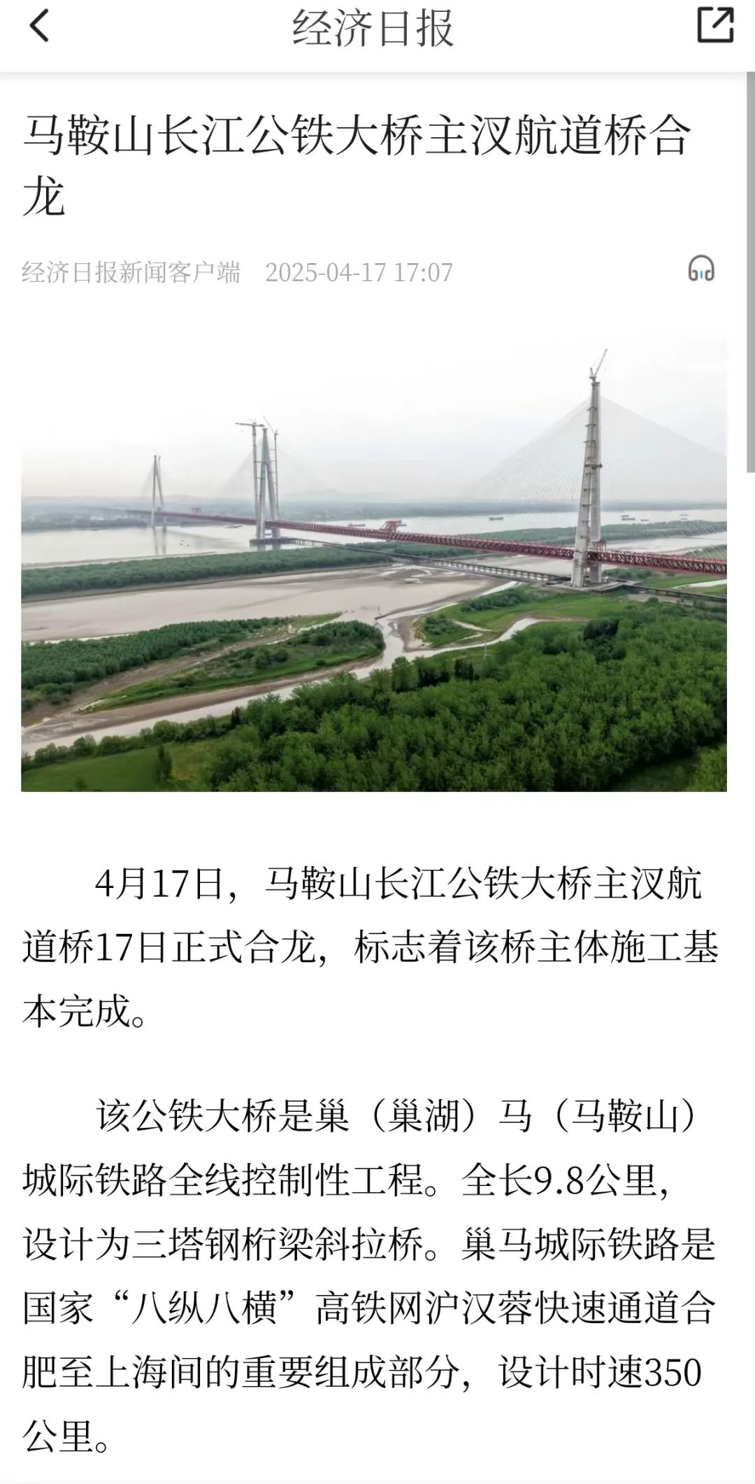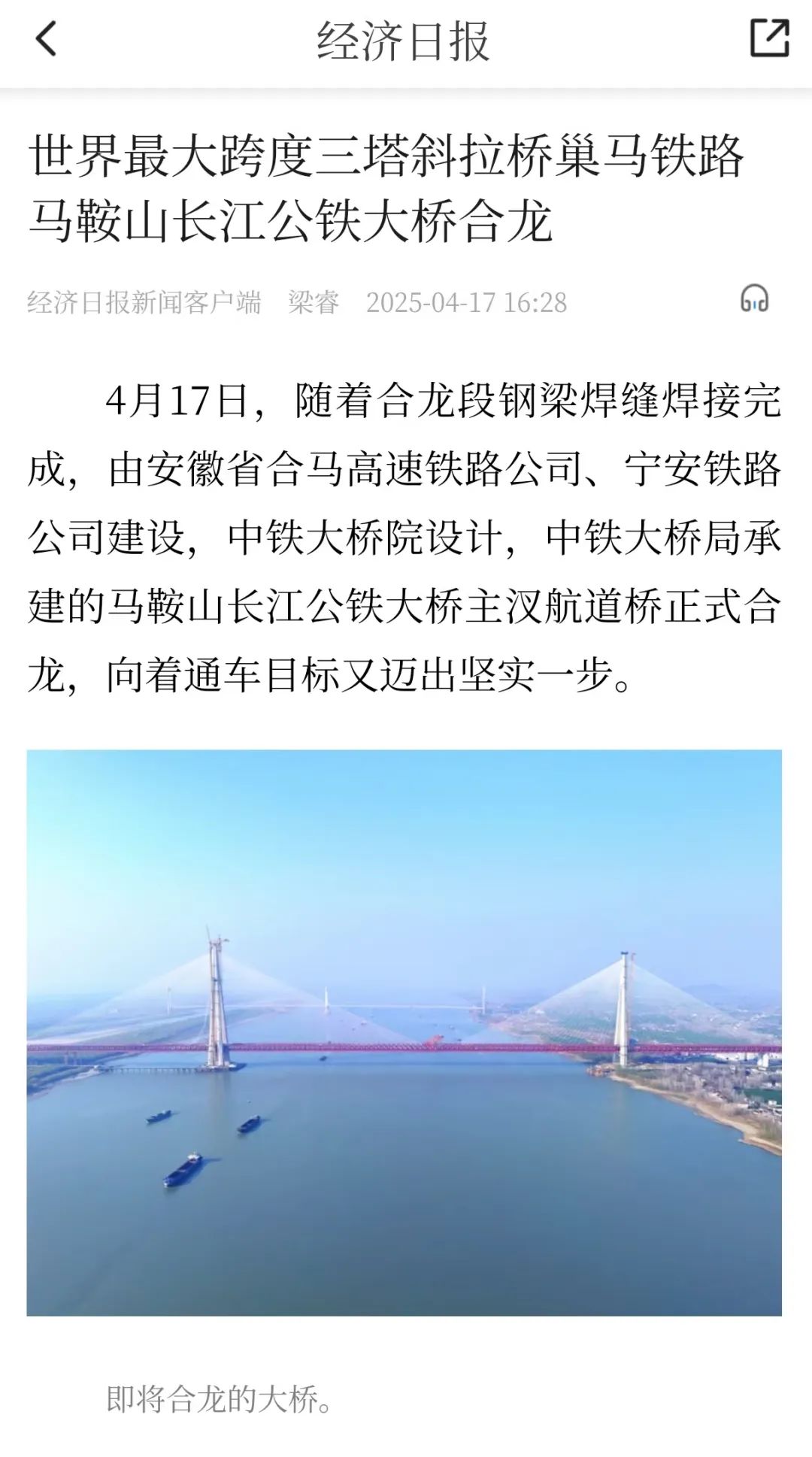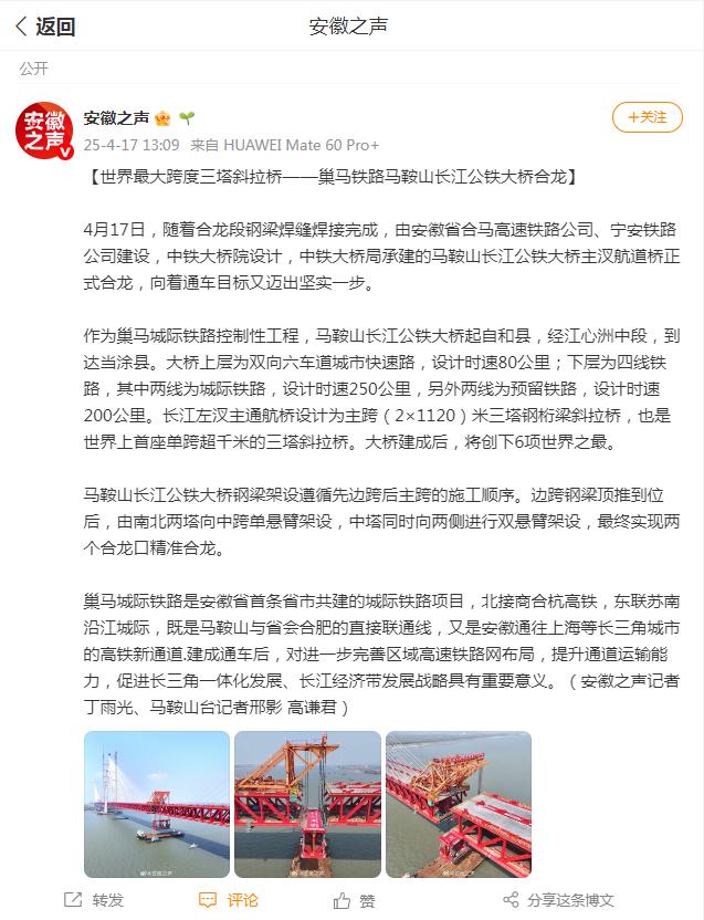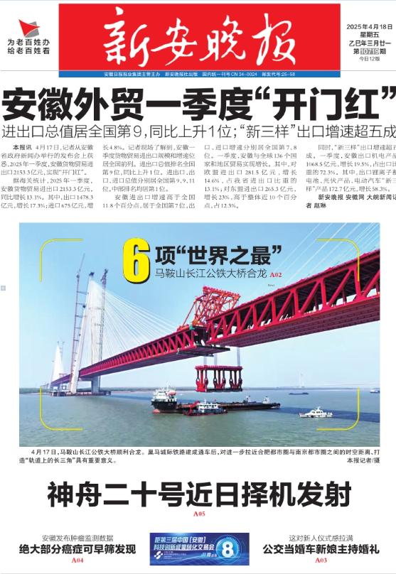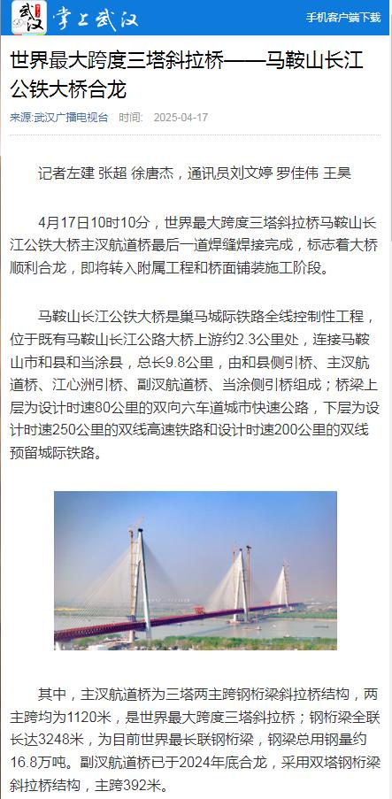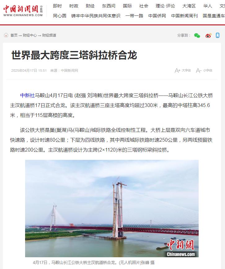 霸屏!看看主流媒体如何报道马鞍山长江公铁大桥合龙龙