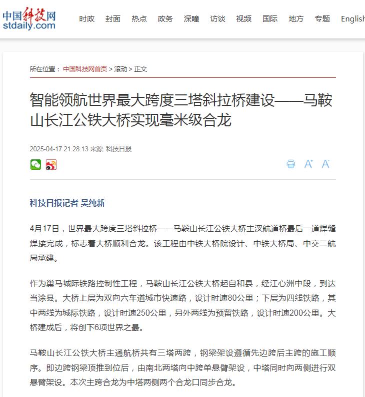 原标题:“霸屏!看看主流媒体如何报道马鞍山长江公铁大桥合龙”