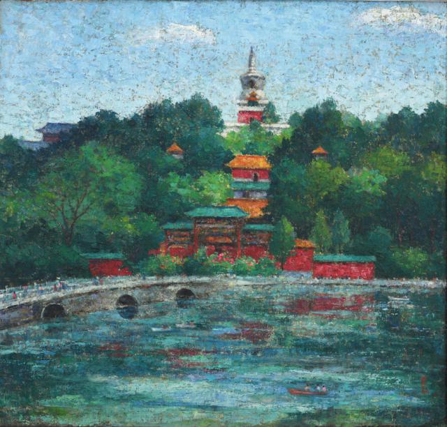 周碧初在不同时期尝试了多种风格。比如《志在千里(陶马)》借鉴了中国绘画的象征性手法,将中国著名的绿色山水作品《千里江山图》与唐三彩相结合,从而展现了自己回国后志在千里之外的远大抱负。《北海公园》采用中国民间装饰红、绿、黄的单色对比,营造出新颖脱俗的现代审美感受。长卷《井冈山茨坪全景》吸收了中国景观的分散构图,连接了不同视点的素描场景,呈现出一个广阔而连续的角度。《东湖(绍兴)》在油画中运用了丰富的中国绘画“点笔”技巧,如点法、米点、苔藓等,增强了色点的表现力,其中“见形、见色、见意、见神”。桂鱼将桂鱼、竹笋等物体组成静物素描,用西方油画技法重构中国花鸟画的优雅...他不能走路,不断创造,不断突破,改变法律到“衰老”,直到色彩与诗歌融为一体。