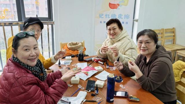 “人生纪念站”——非物质文化遗产螺旋胸针手工活动,将非物质文化遗产体验与认知障碍相关的科普知识相结合,引导社区居民和老年朋友关注和关注认知健康。