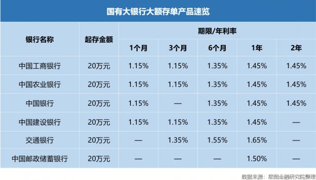 (1)大型国有银行的存款利率大部分在 1.5% 下面,比较有竞争力的是交通银行, 1 大额存单年限利率为 1.65%;
