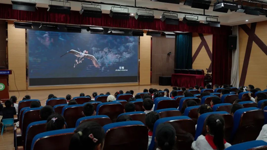 讲座阶段,学生通过观看科普视频,了解上海、青浦丰富的鸟类动物资源、野生动物援助法律法规等科普知识,培养学生关心鸟类、保护野生动物的观念。学生情绪高涨,认真倾听,积极回应。逸夫小学的同学们说:“今天了解了相当多的野生动物,很有意思。动物是人类的好朋友,我们不能吃‘野货’,更不能打扰它们,这是对野生动物最好的保护。”