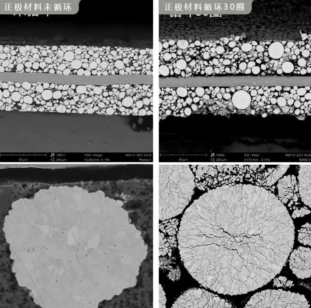 图片/电池正极材料未循环与循环30圈对比,来源/因特网 截图新能源观