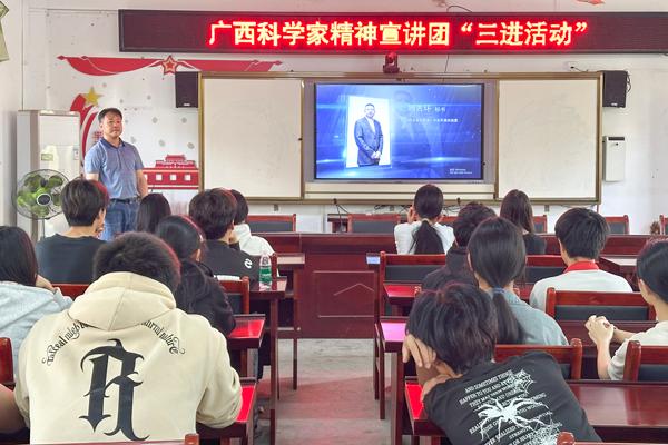 4月17日,广西科学家精神宣传小组成员、合浦县常乐中学高级教师邓桂林以“科技报国,代代相传——新时期科学家精神的传承与实践”为主题,为即将参加中考的学生加油。
