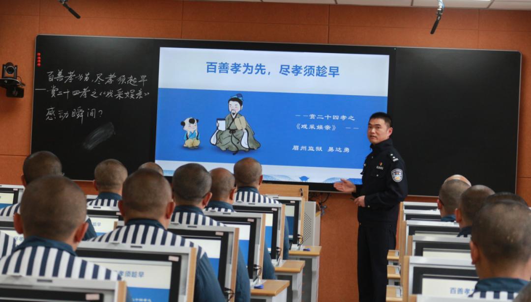 将“孝文化”融入中华传统文化教育课堂,丰富中华传统文化教育内涵。警方以“一切美德中孝顺为先,孝顺为先——赏二十四孝之“戏彩娱亲”为导向,以“树欲静而风不止,子欲孝而亲不待”为导向,立足罪犯改造现实,结合生动的孝顺故事,通过引导、讲解、讨论、思考等方式唤起罪犯对父母的感激和思念,唤起他们的良心,激励他们深刻反思罪行,懂得感恩。提高他们遵守监管纪律,积极改造,悔过自新的观念。
