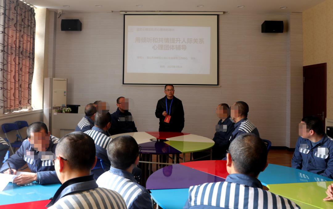 联合眉山心连心社会工作服务中心组织犯罪分子进行“共情倾听,重塑人际关系”主题团辅。活动以“名字串烧”破冰,通过情景模拟、案例分析等生动方式,简单地传授沟通技巧和共情方法。参与者在“能量传递圈”阶段,通过肢体语言传达善意,感受情感共鸣。这一浸润式心理疏导就像精神甘霖,滋润着高墙内干燥的内心土壤,为罪犯重建健康心理认知铺平了专业道路。