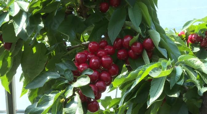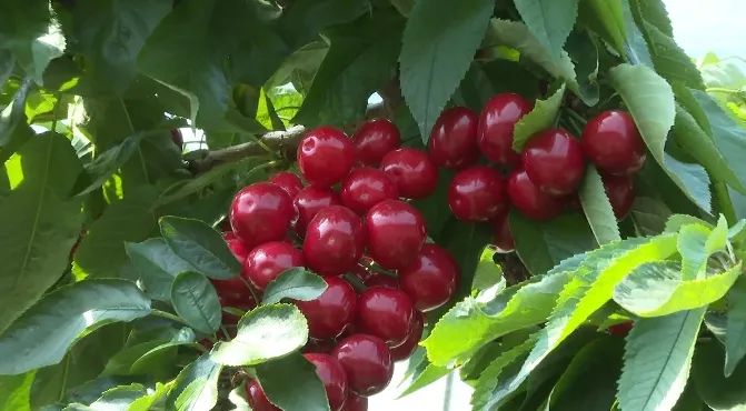 绿叶间点缀着一簇簇美丽的早樱桃。