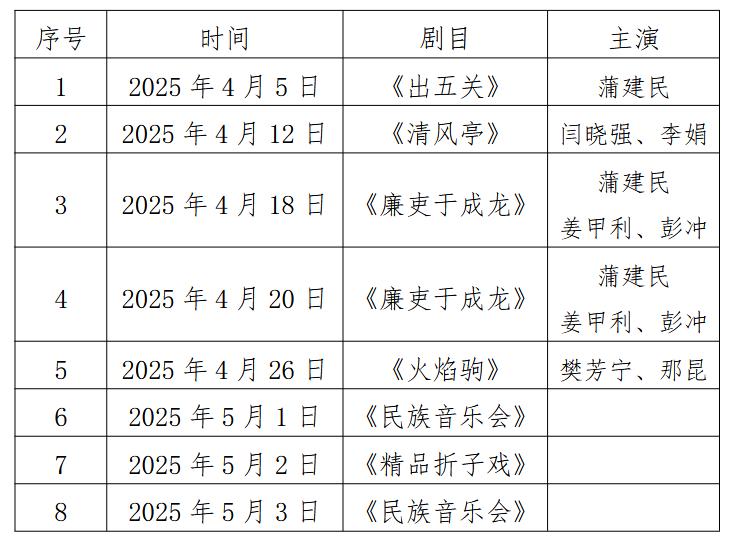 2025 年 4 月 5 日-5 月 3 日表演计划
