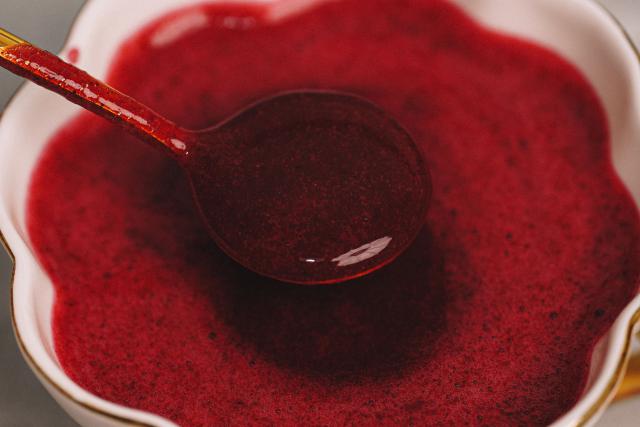 五红粉冲的浓一点有那种血色,很开胃,小孩很喜欢吃(3 岁以上可以吃),吃法特别多样,咕咕拿 2 包五红粉 1 包燕倍伽,调出芝士蛋糕的味道。