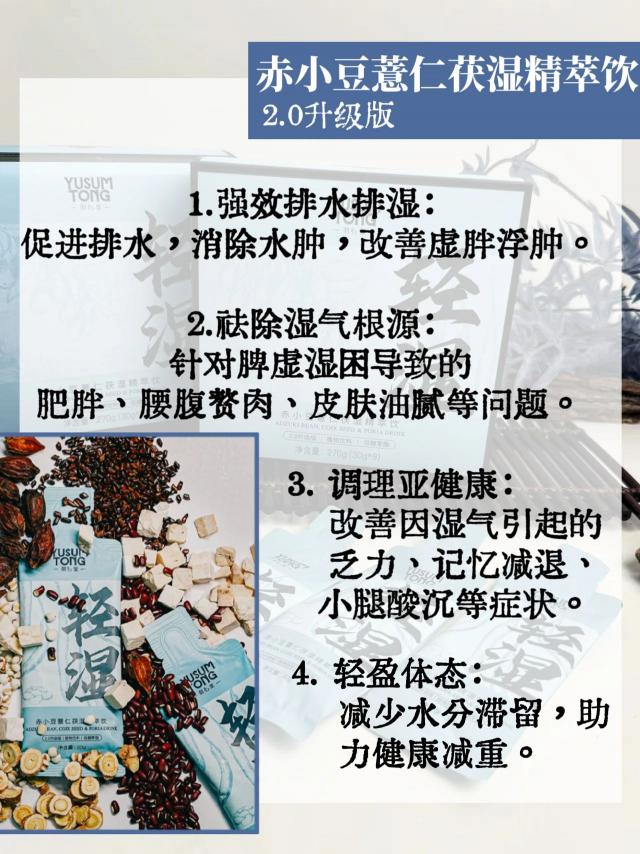 1️⃣ 强力排水排湿:促进代谢排水,消除虚胖水肿,告别“水肿体质”。
