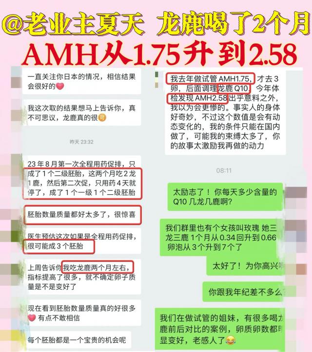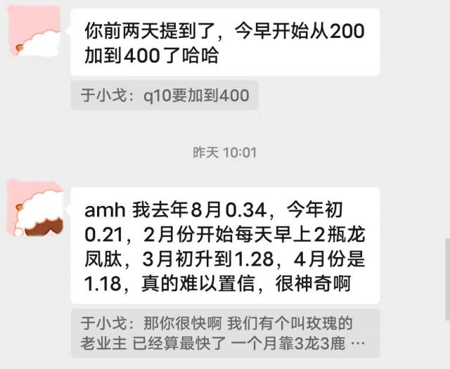 另一位试管战友对咕咕说,她喝了整整一杯。7 个月 2 龙 2 鹿,AMH 从 0.34 涨到了 1.18