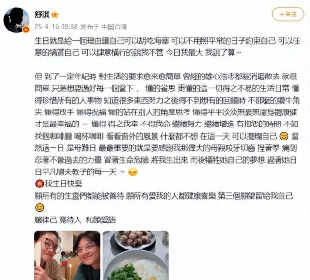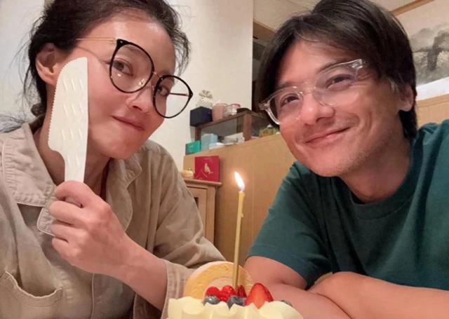 昨天是舒淇 49 生日那天,她在微博上与丈夫冯德伦合影。