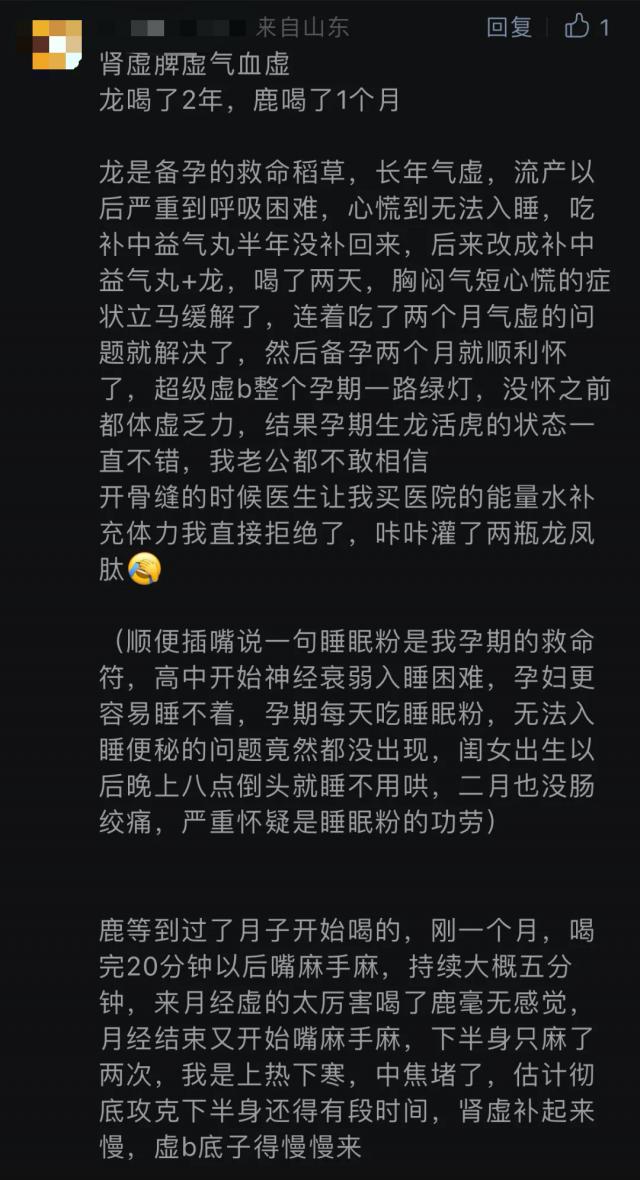 谈完功能和成分,再来说说那些喝龙鹿的人的经历。