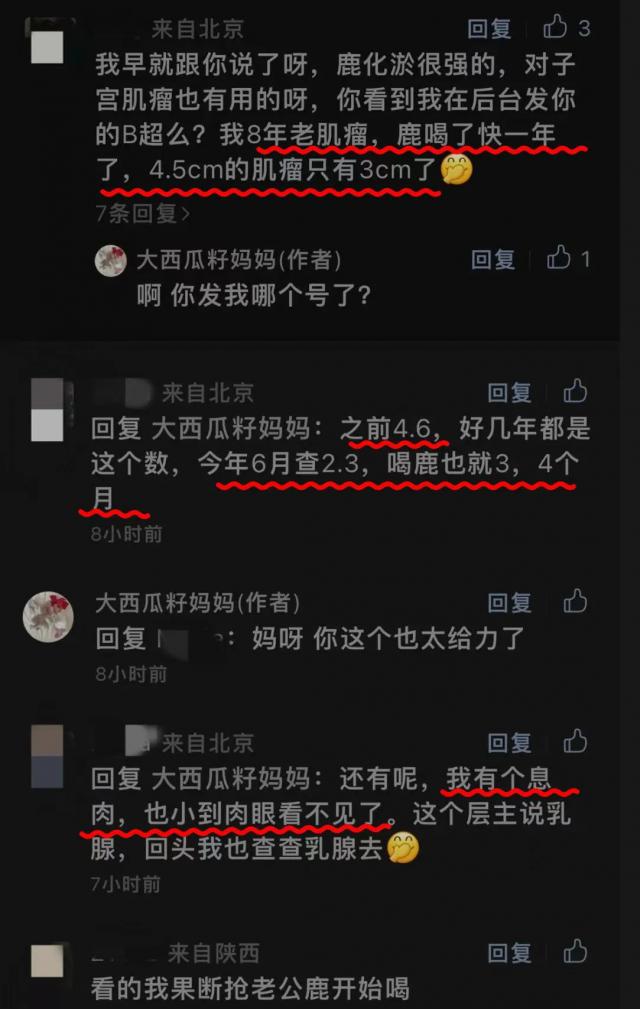 这种每天 2 鹿是最直接的,有几位老主人靠喝鹿把乳 X 结节、增 S、子 G 肌瘤喝出指标性的变化,全是真实案例。� �