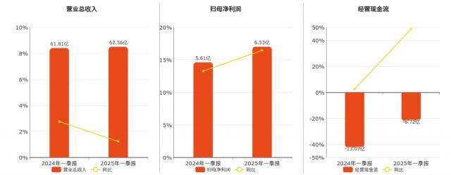 企业总营业收入为 62.56 亿元。归母净利润为 6.53 十亿元。经营活动现金净流入 -6.72 亿元。