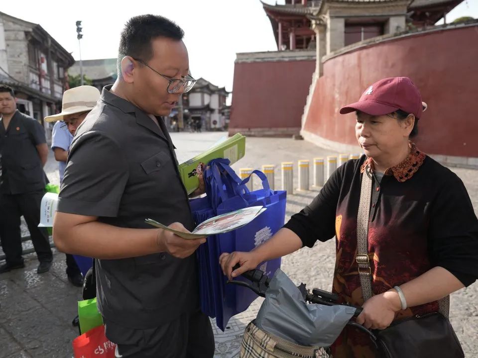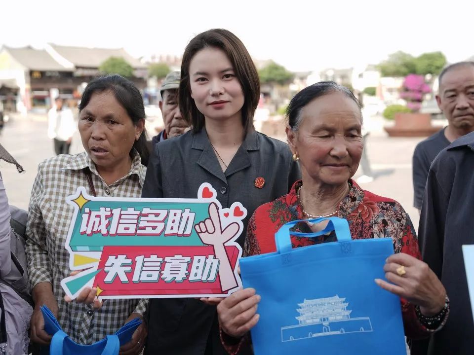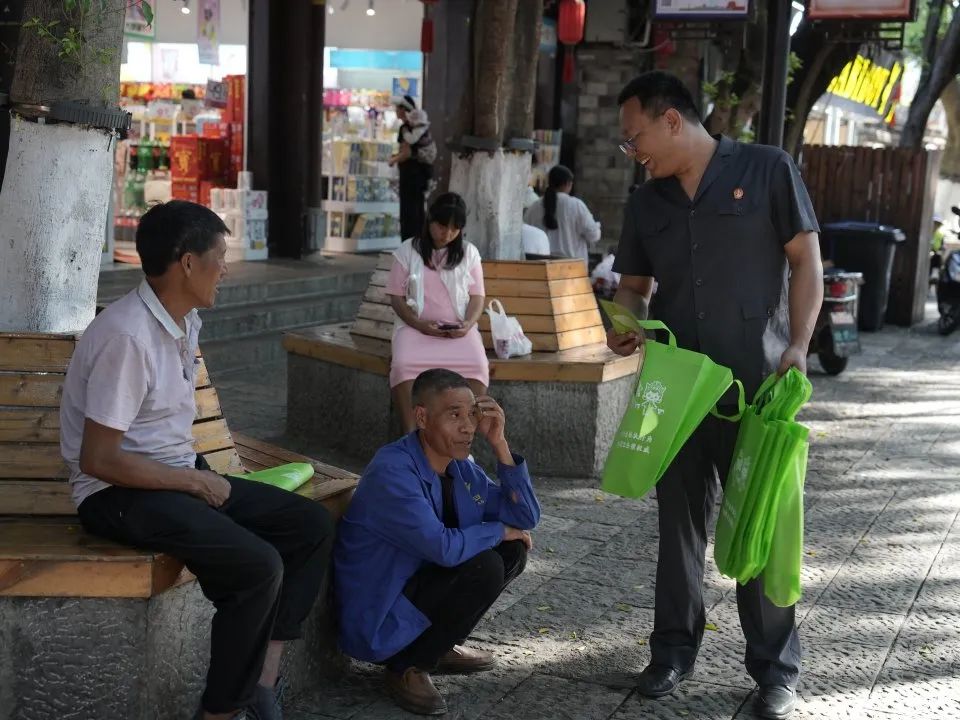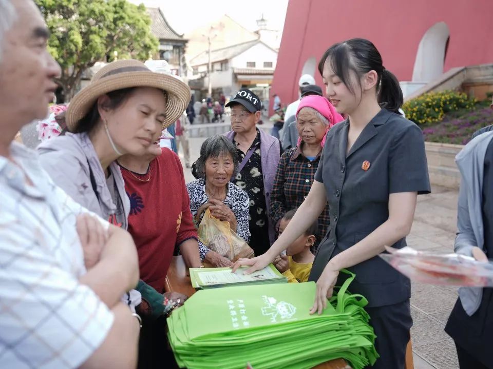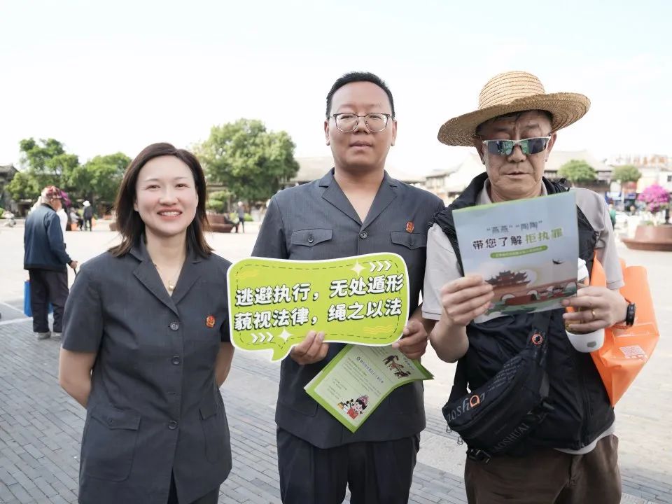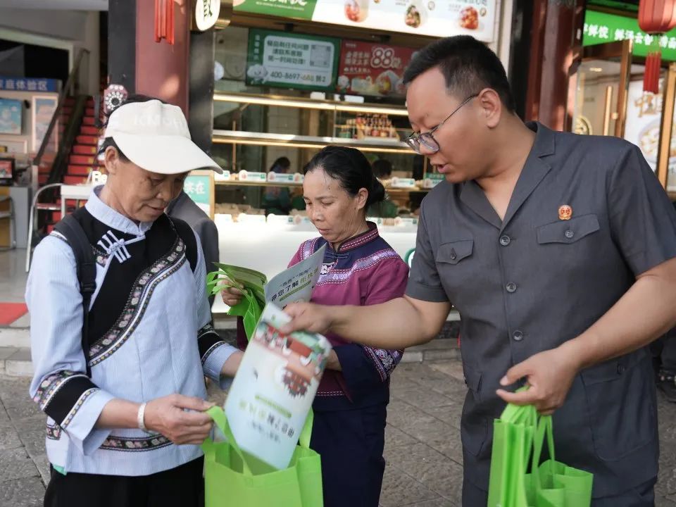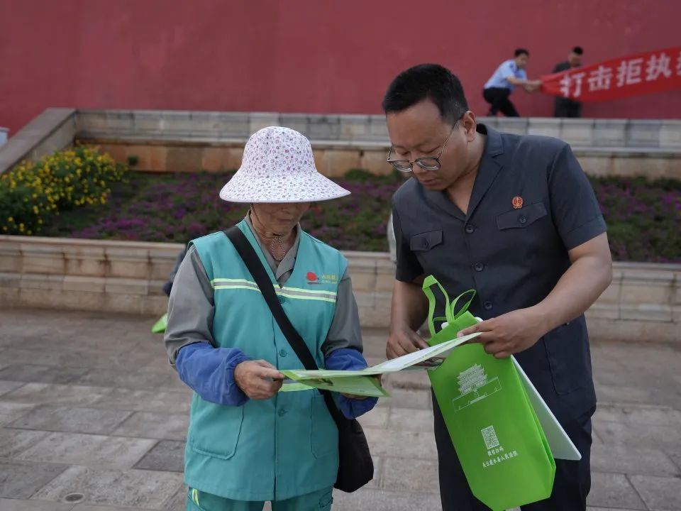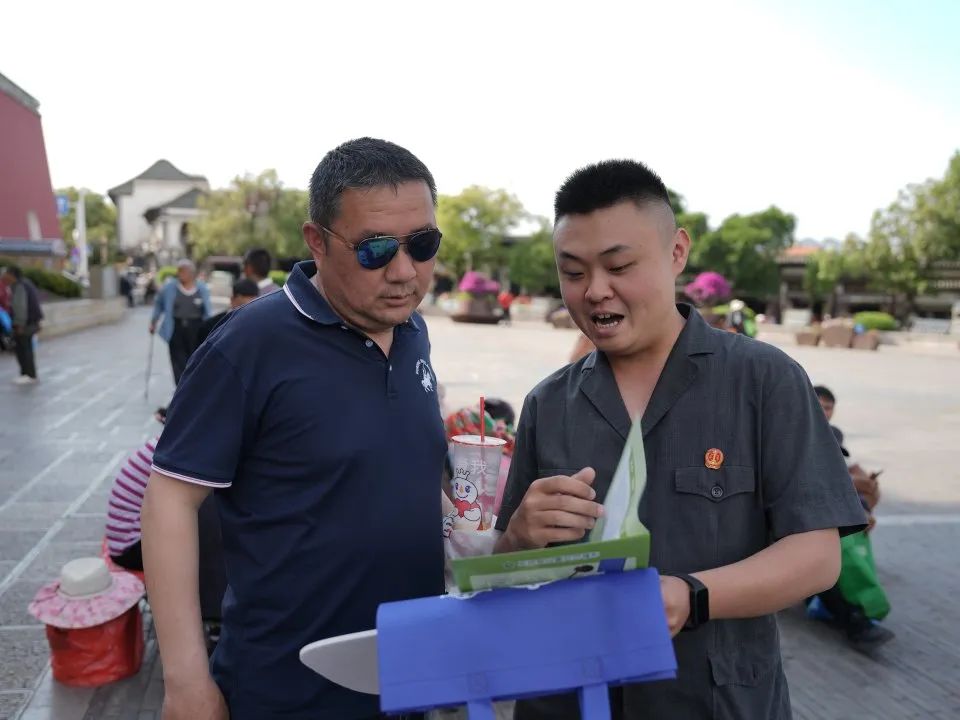 随着朝阳楼门口人潮的消退,警察们带着宣传册和文化创作周边去了临安路,走进商家为经营者普及法律。“你可以关注建水法院微信官方账号,上面有不诚实的信息。如果有线索可以向法院举报,商家也是打击拒绝和宣传拒绝罪的中流砥柱!”