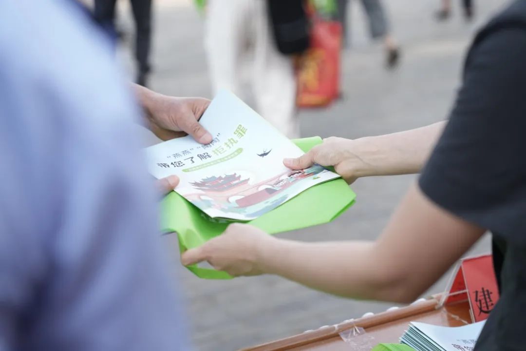 在现场,警察和大家一起开展了一系列“打卡”活动,包括“燕燕”、“陶陶”娃娃和标语牌。“流行”的小法官IP不仅吸引了大家的互动,也加深了大家心目中“拒绝犯罪”的印象。