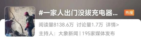 "一家人外出时没拔充电器,家里烧光了"