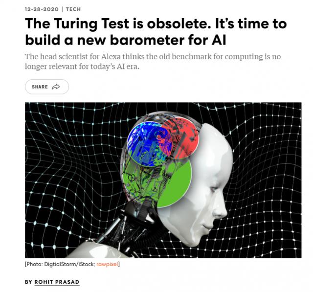 2020 2008年,亚马逊首席科学家 Rohid 还发文称,图灵检测早就应该淘汰了!