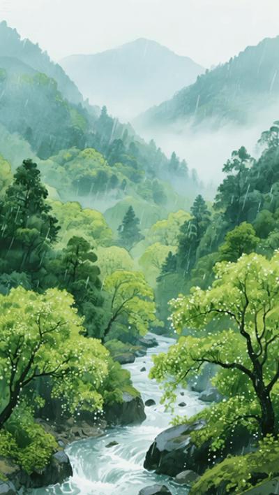 在百谷的雨中,为沙沙作响的树梢斟一捧。