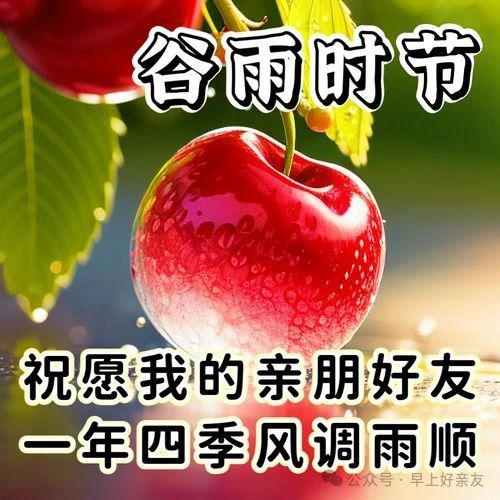愿你在谷雨这个季节身心愉悦,一切顺利。愿你的努力像种子一样开花结果,愿你的收获像田野一样丰收硕果。祝你生活更美好,天天快乐!