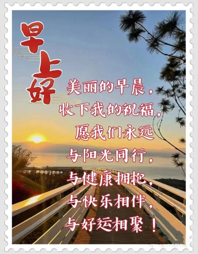 送去安全,希望顺利,祝你健康快乐。每天早上,都有美好的祝愿,沐浴着温暖的阳光,滋润着我们的心灵,保持健康,享受着美好的生活。让我们迎接新的一天,用真诚的心情说早上好!