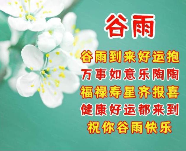 谷雨滋养百谷丰,友谊深厚。愿你安全拥抱,健康永远幸福。幸福充满手握,幸福永远伴随着微笑。甜蜜和幸福藏在心里,财富和好运不会放松。当你进入谷雨时,你可以享受你想要的一切。谷雨的新风吹在脸上,一切都像幸福的星星一样。