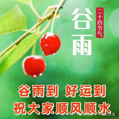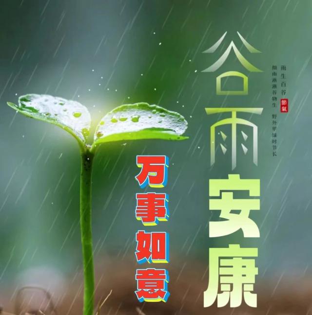 润物无声谷雨至,细雨如丝送祝福。五谷丰收,青山绿水,丰收满仓。财源广进,好运来临,丰年喜事欢呼。如意祈祷谷雨,安康吉祥永远伴随。谷雨快乐!