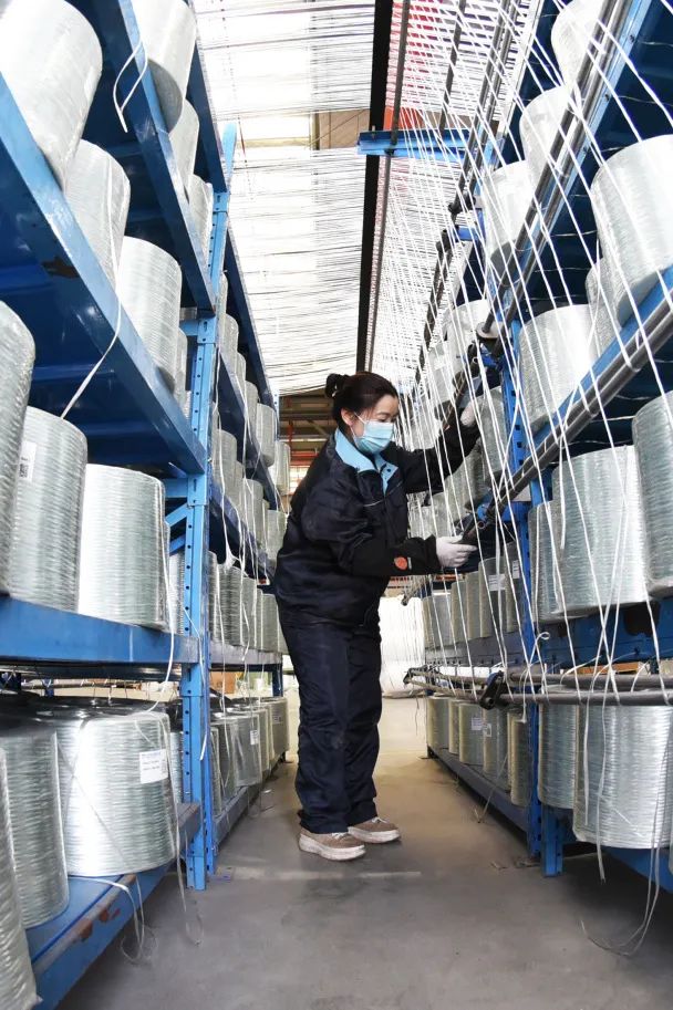 工人们忙于玻璃纤维生产线