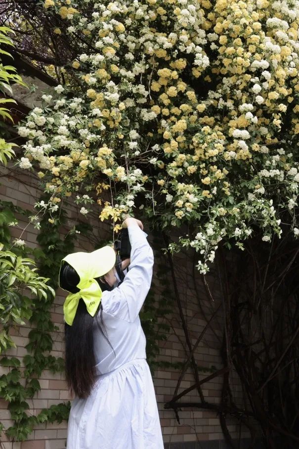 许多市民慕名而来,与木香花合影。