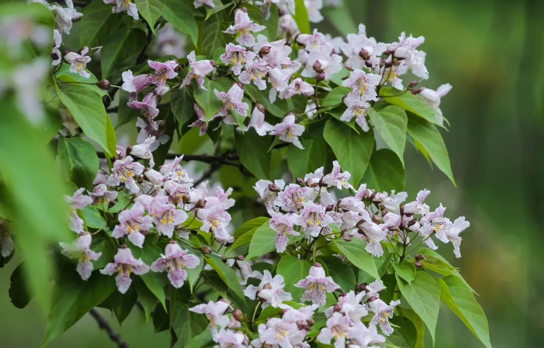 一片片梓树竞相盛开,美不胜收。