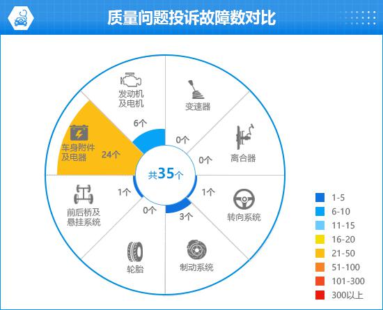 截至发稿,车质网共受理。 2024 款智界 R7 投诉 43 宗,其中简单质量问题的投诉 29 宗,涉及 35 个故障点。车身附件和电器在这些投诉中所占比例较大。此前“千名车主评价新车”的质量可靠性调查中,车主对其质量可靠性给予了较为客观的评价。在这些人中,感觉“非常满意”和“满意”的车主比例分别是 12.5% 和 47.1%;认为“一般”的车主比例是 34.6%;明确表示“不满”的车主比例为 5.8%。