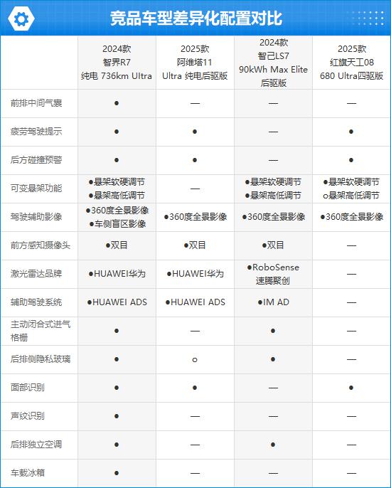 2024年,无论是动力参数、续航里程还是配备水平,与同级竞品车型相比, 款智界 R7 表现相当不错。客观来说,在新能源时代,由于自有品牌的强势崛起,“内卷”的情况非常严重,所以商品之间的配置差距其实并不大。即便如此,2024年 款智界 R7 仍然可以在横向对比中占有一定的优势,整体表现可圈可点。