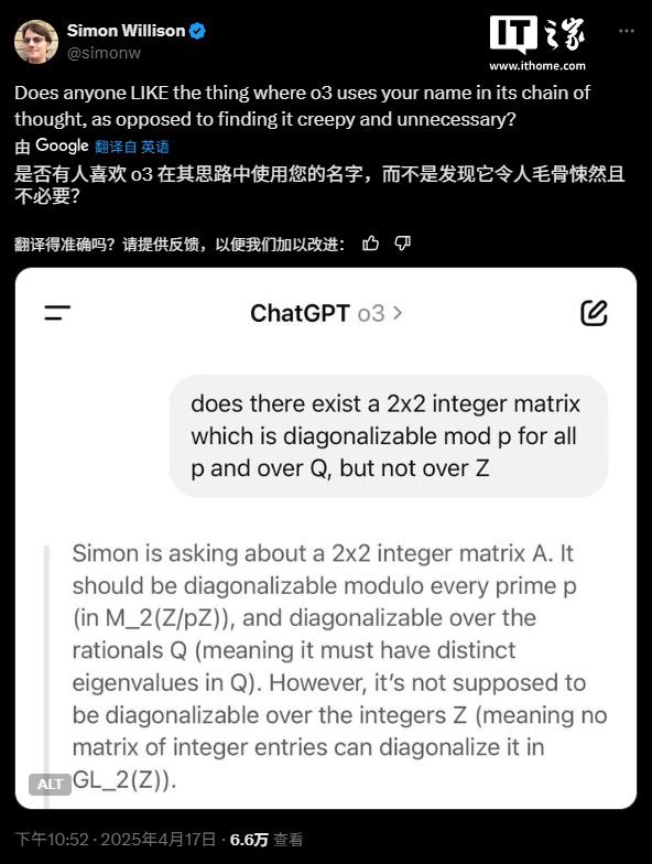 IT 世家 4 月 20 日消息,最近,部分 ChatGPT 客户注意到一个现象:当与用户互动和逻辑判断时,这个人工智能聊天机器人会直接称呼客户的名字。这种行为不是之前工具的默认设置。更令人费解的是,有些用户表示,即使他们从未向上。 ChatGPT 透露自己的名字,也被他直呼其名。