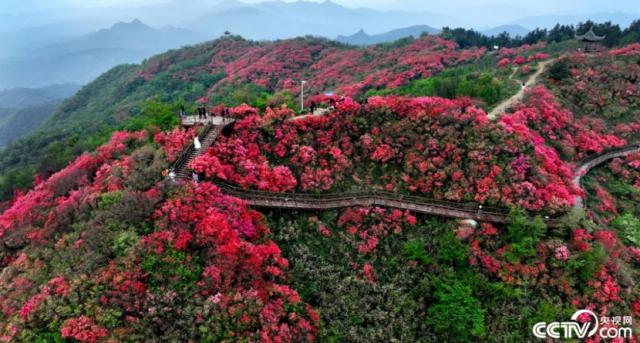 在安徽省六安市金寨县吴家店镇太平山上盛开的映山红花,美不胜收。