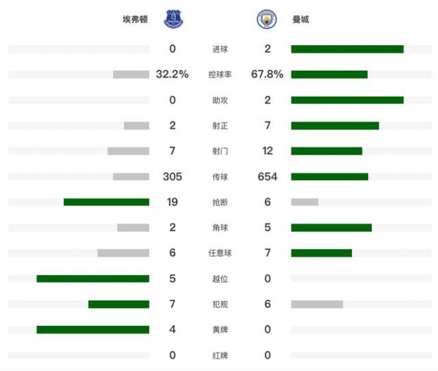 曼城2-0埃弗顿!第四轮不败升至第四轮 8分钟2球 20岁的奇兵连场破门