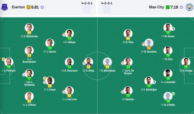 首发埃弗顿:1- 皮克福德、15- 奥布莱恩、6- 52'52'塔尔科夫斯基- 迈克尔 - 基恩)、32- 布兰斯怀特,19- 米科伦科、27- 盖伊(79'24- 阿尔卡拉斯)、37- 加纳、16- 杜库雷、11- 哈里森(79'42- 伊罗格布南)、10- 恩迪亚耶(79'7)- 麦克尼尔)、22- 布罗亚(63'14- 贝托)