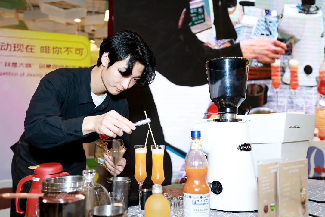第一名选手林志浩率先出道。他从咖啡豆的选择、研磨、提取、组合,再到创意元素的巧妙添加,每一步都展现了自己的专业技能和创造力。