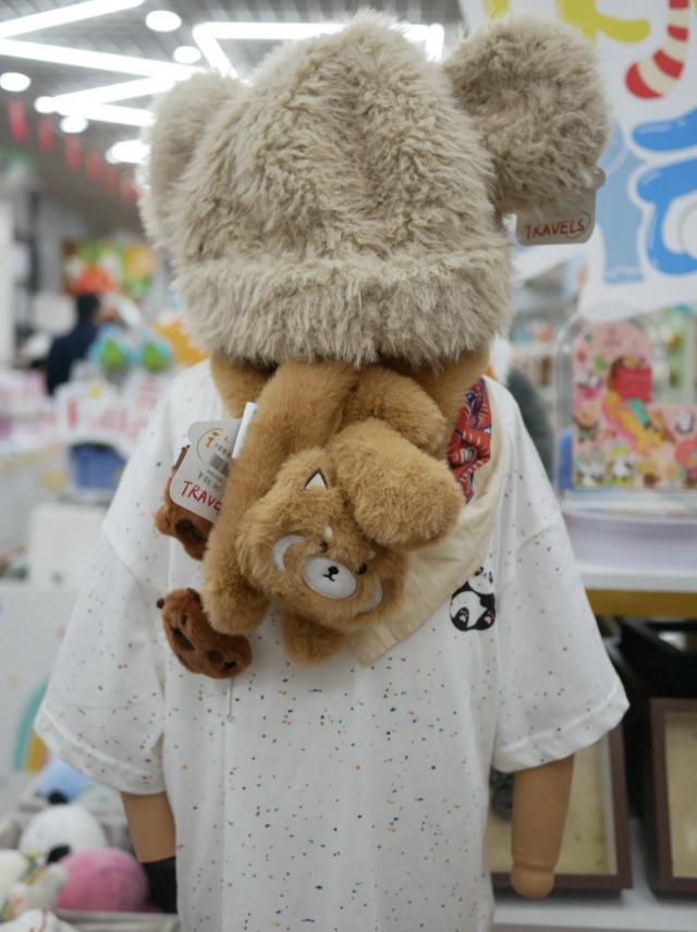 在上海动物园的商店里,军队的冰箱贴纸、名片、徽章和帽子已经更新。军队的同一顶帽子最受欢迎,潦草的头发与“潦草的小熊”熊的相似性高达 99%!