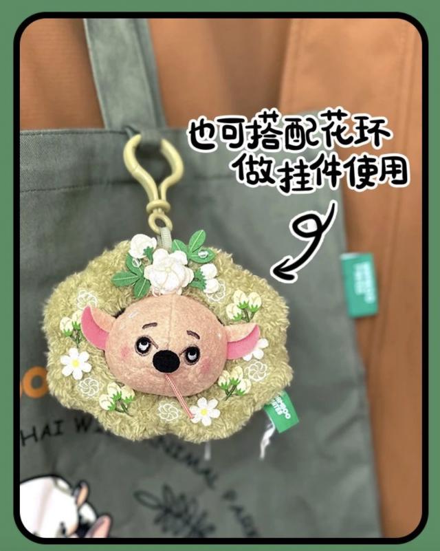 这个趴趴公仔喜气洋洋,还可以搭配花环作为吊坠使用。