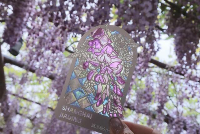 嘉定紫藤透明笔记,阳光透过花瓣,读书几秒钟就变成偶像剧了!紫藤金属冰箱贴纸,“将春天的紫藤凝固成永恒,一贴藏起来,满满的温柔”。紫藤季咖啡杯也可以给农民工一个紫色的花海。