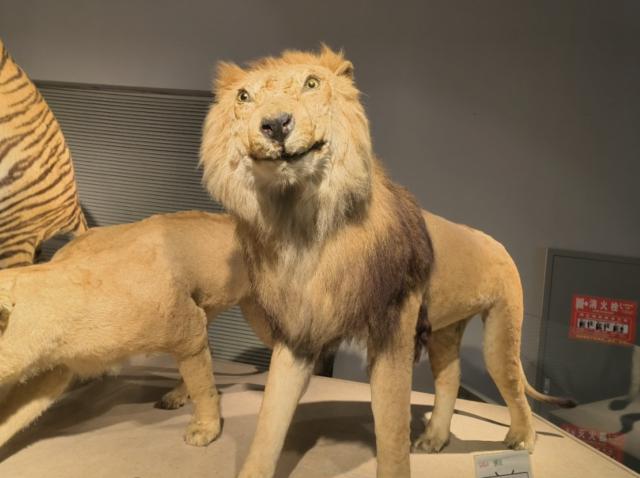 上海自然博物馆 "萌狮" 这是一只来自杭州动物园的成年狮子, 1977 2000年死亡后,它被制成标本。由于历史悠久,填充物老化,面部变形,呈现出独特的表情,在网络上流行起来,成为博物馆的热门展品。也是很多人手机里的表情包� �