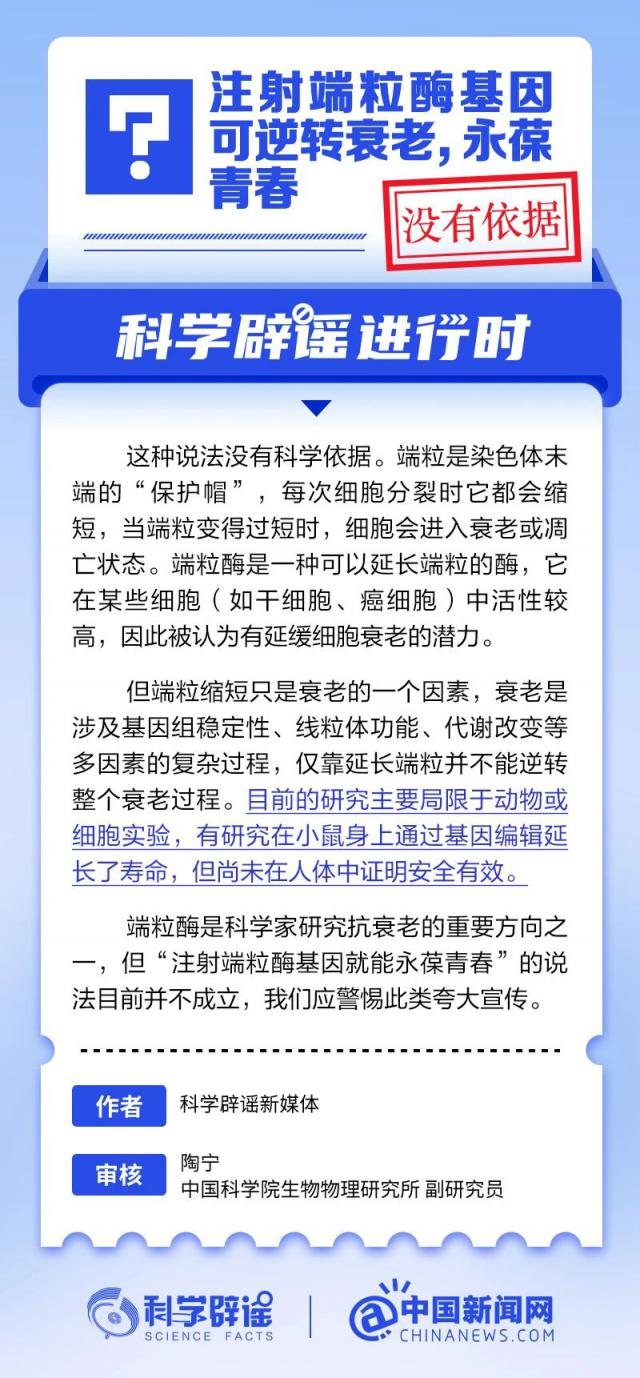 注入端粒酶基因可逆衰老,青春永驻?